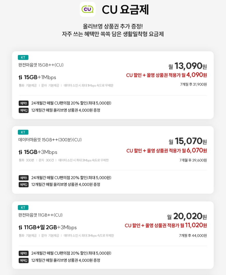 ![[티플러스] 알뜰폰 3Mbps무제한 CU 5천원 올리브영 4천원 쿠폰 ( 15,070원 / 무료배송 ) -](/data/upload/kt알뜰폰13_2458946.jpg)