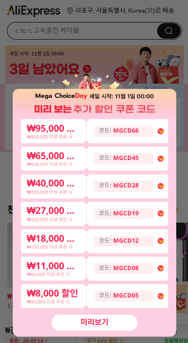 알리익스프레스 11월 할인 프로모션인 메가 초이스데이가 곧 시작됩니다.